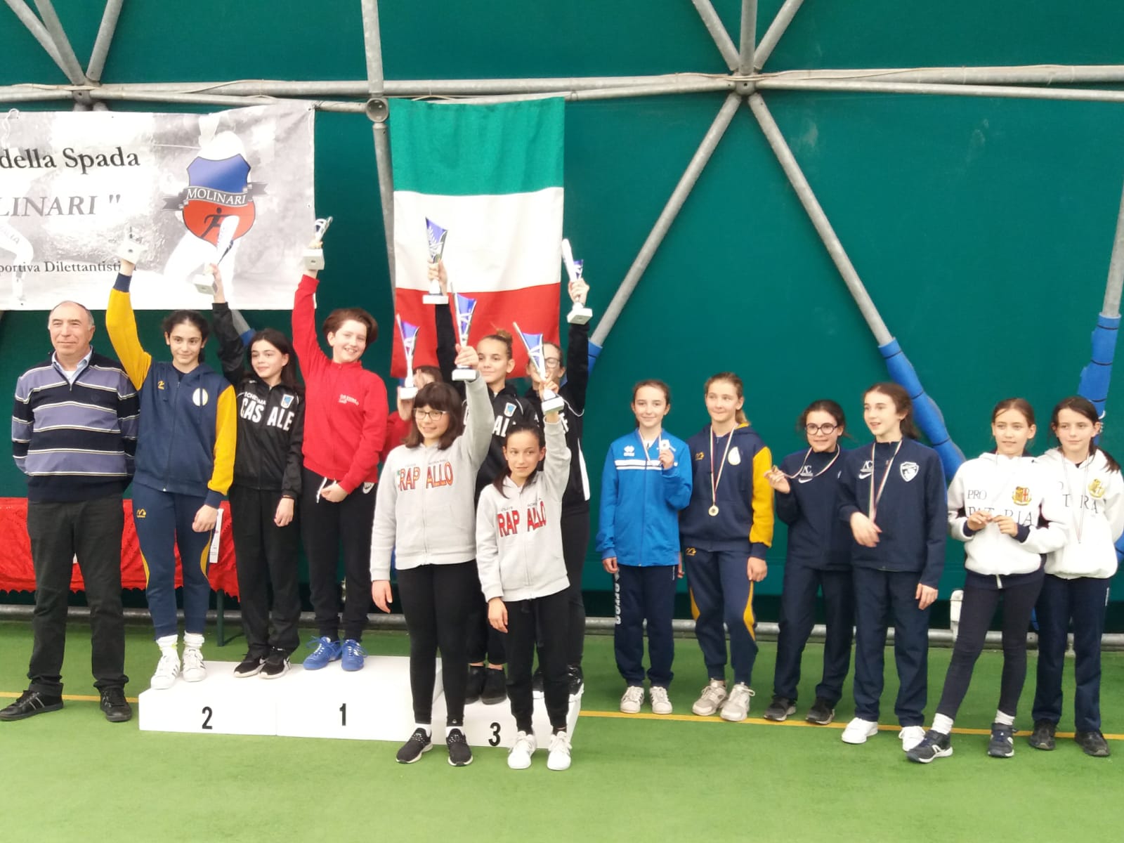 Doppio bronzo per i Giovanissimi (2007), con le coppie Emanuele Mancini – Ruben Triberti e Filippo Giorgione – Marco Ferraris terzi a pari merito. Tra le Giovanissime, un ottimo 5° posto per Lucia Miglino, l’unica spadista dell’A.S. Pro Vercelli impegnata a Valle Lomellina.