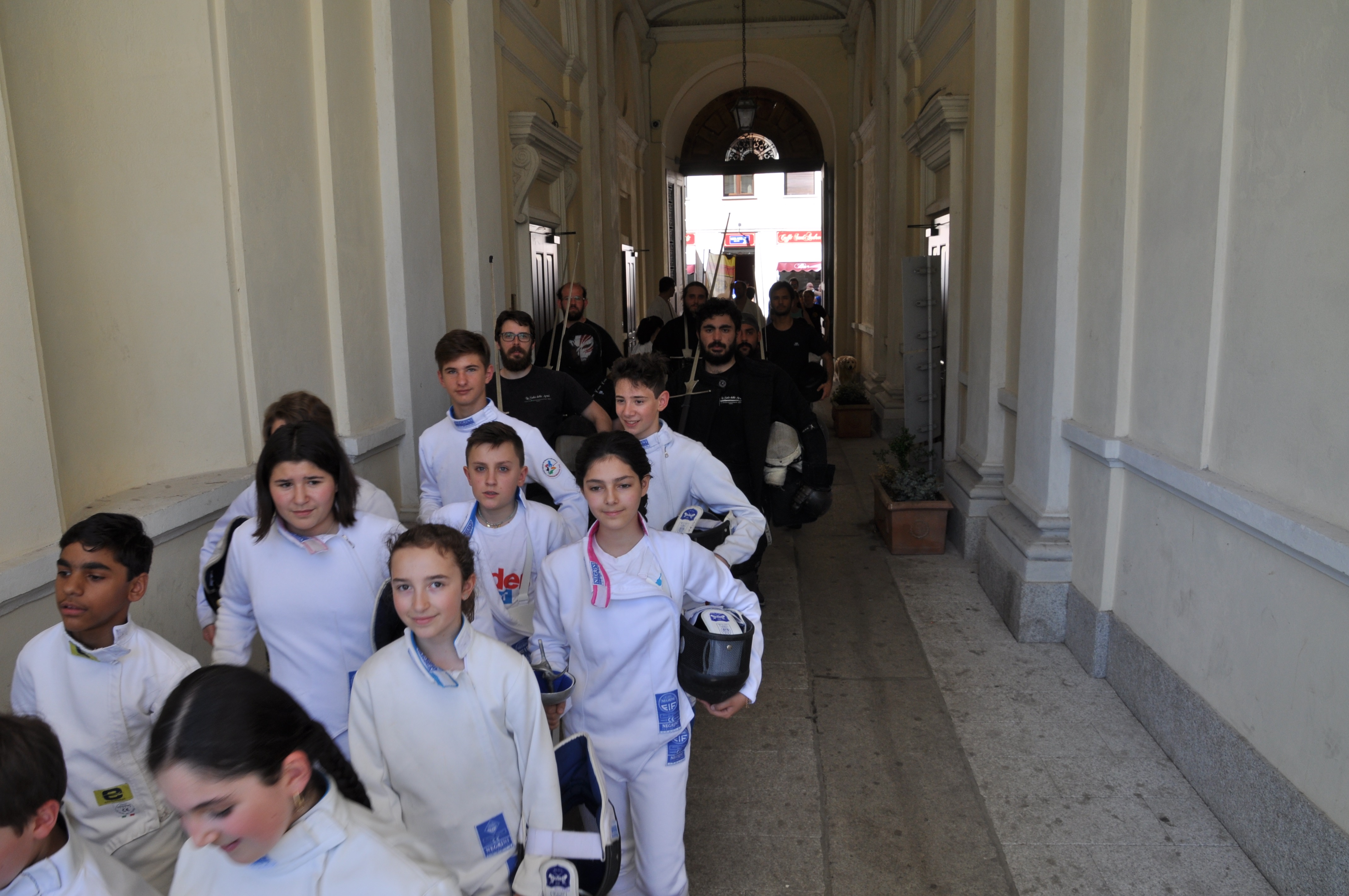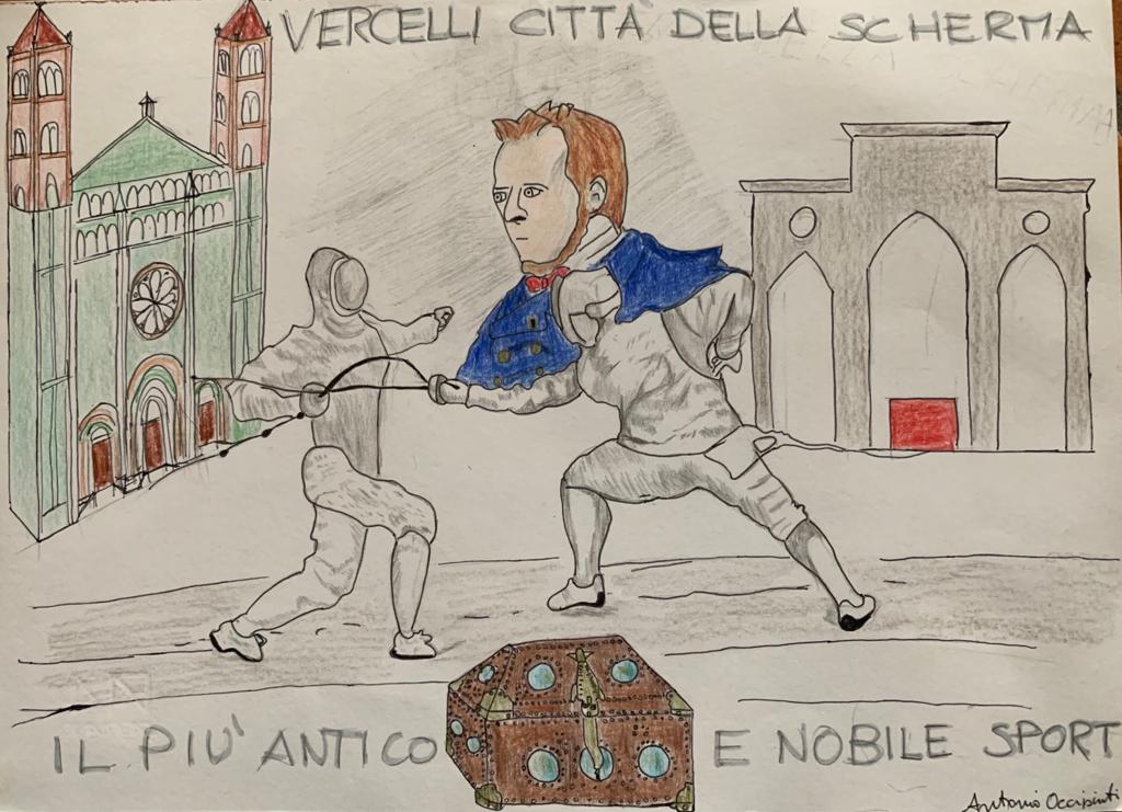 Dopo la sfilata di fronte alla Basilica di S. Andrea, tutti i partecipanti si sono trasferiti all’Area Pisu, nell’area destinata alla scherma, allestita grazie al contributo di Errea e Marzio Dan. Grande curiosità e partecipazione per tutto il pomeriggio, durante il quale, nell’area principale riservata al Coni Provinciale, l’Associazione Scherma Pro Vercelli ha anche premiato i vincitori del 1º Concorso di disegno intitolato “Vercelli e la scherma“, rivolto a tutti gli allievi delle scuole Primarie e Secondarie di Primo Grado di Vercelli, riguardante lo sport della scherma e la sua tradizione vincente sul nostro territorio.