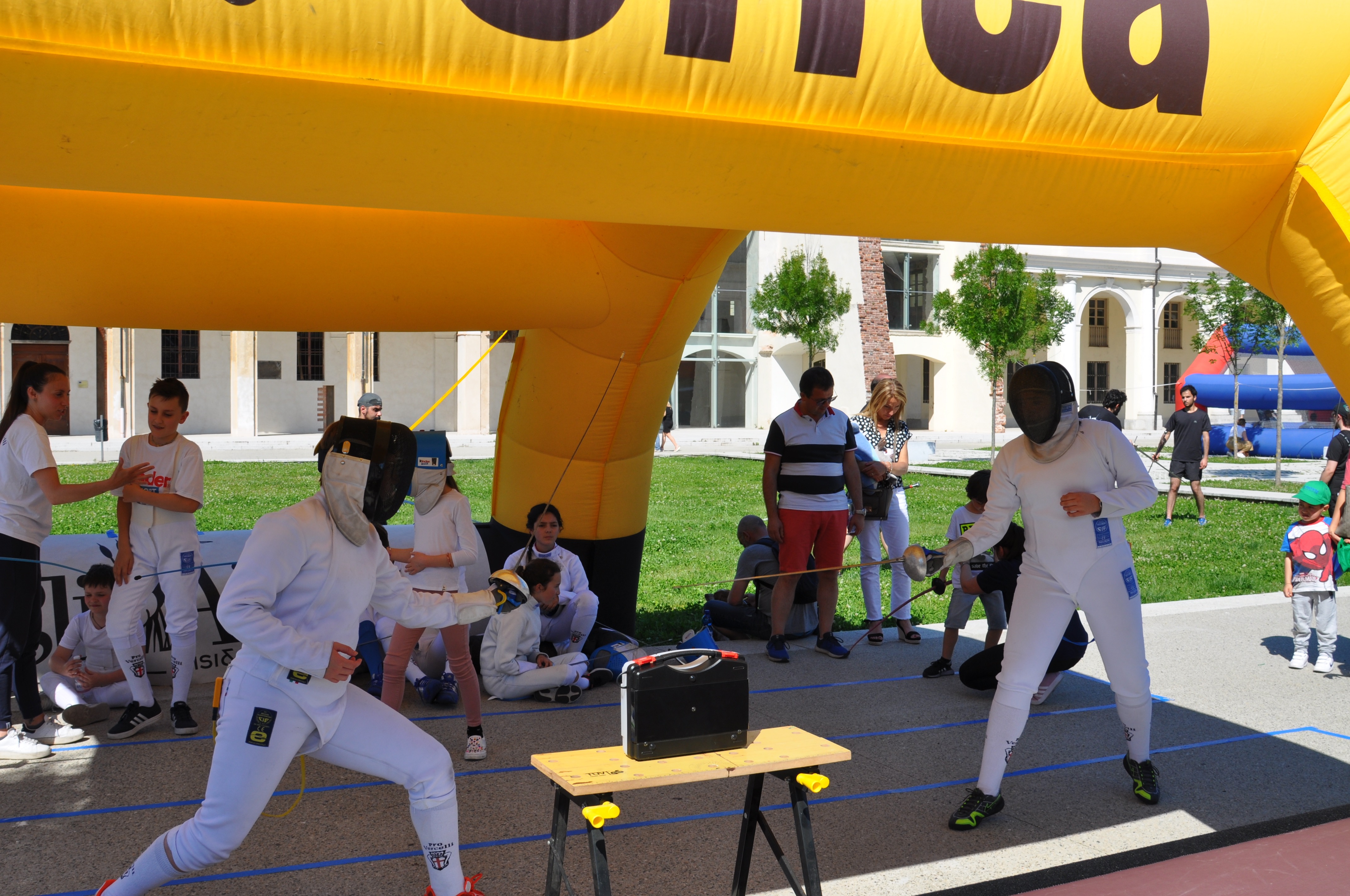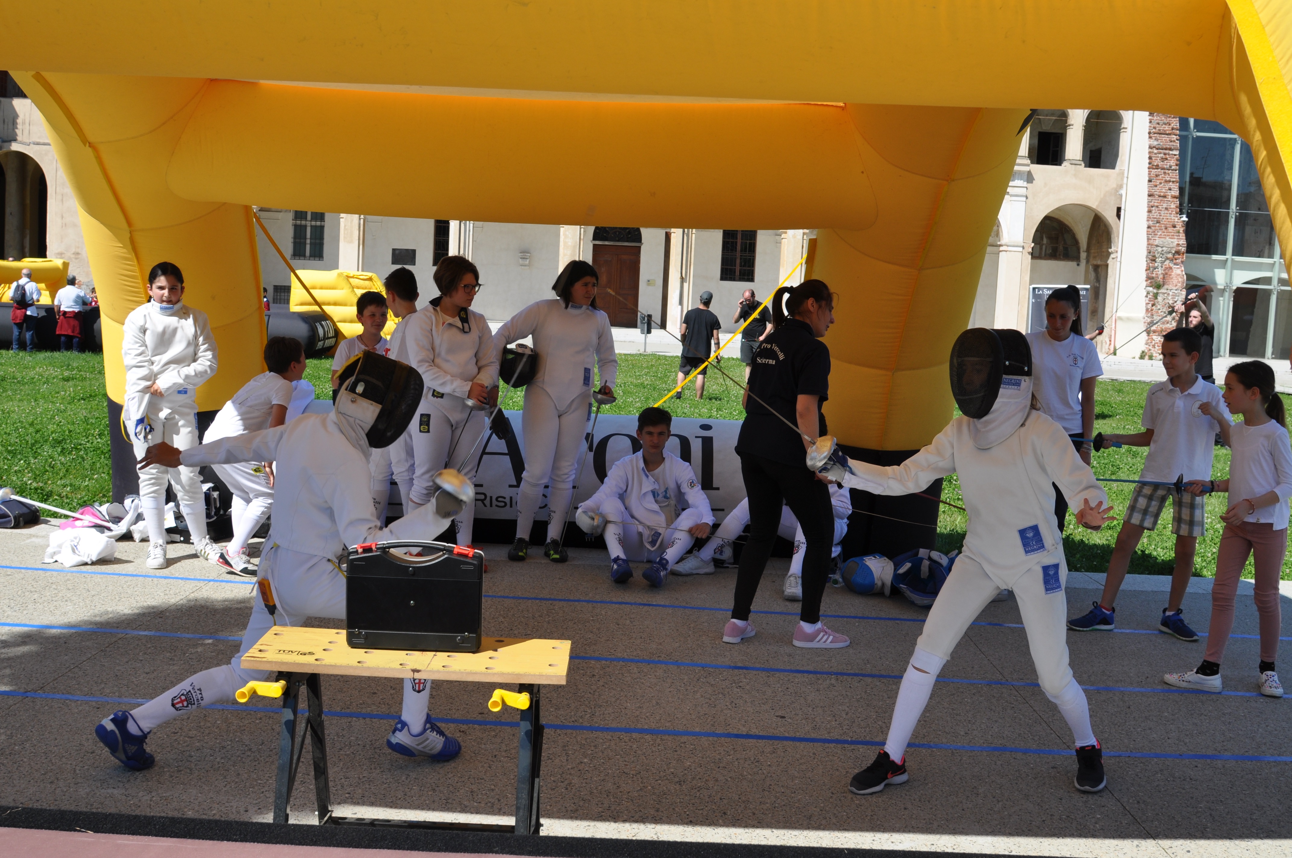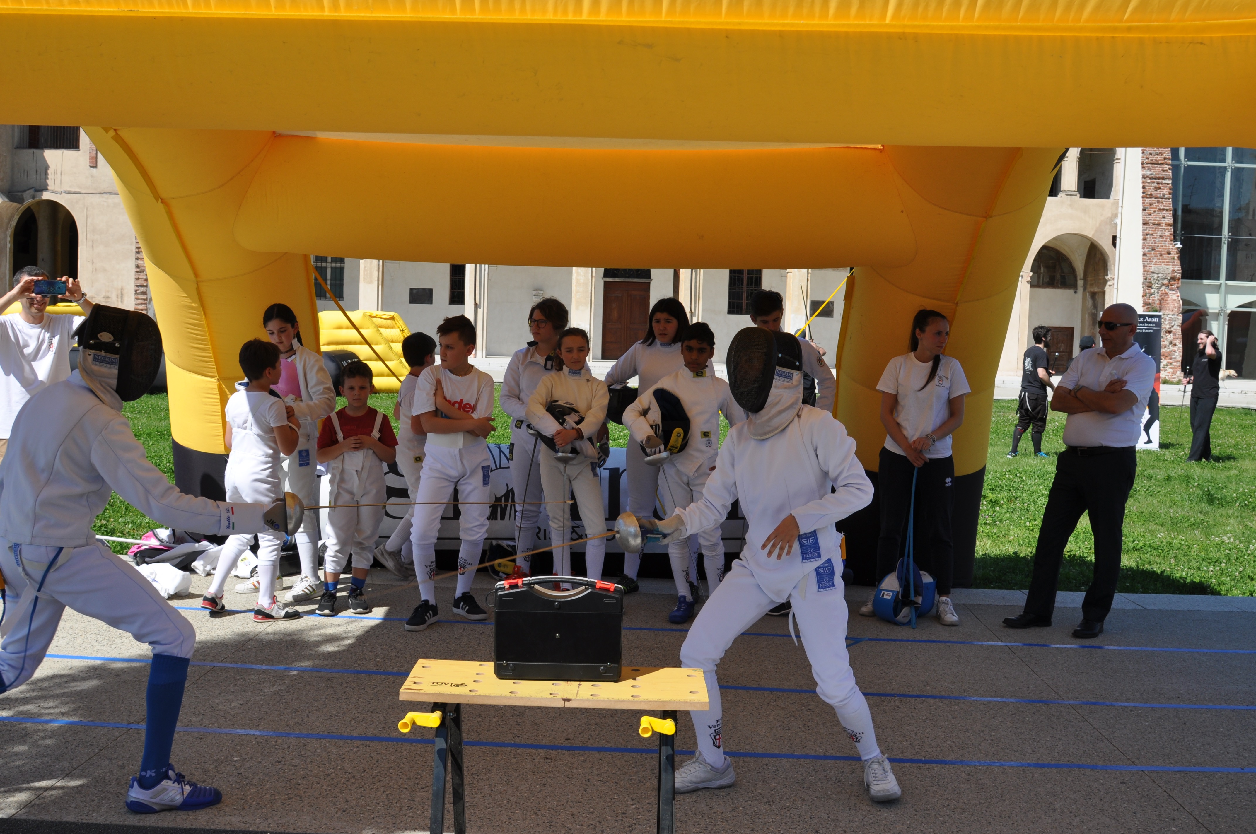 Si è tenuta sabato 2 giugno 2019, all’Area PISU di Vercelli, la XVI Giornata Nazionale dello SPORT, un’ottima occasione per provare la scherma, conoscerci e … anche solo curiosare! Oltre ai momenti di prova per i più giovani e ai tradizionali incontri dimostrativi, quest’anno è stato possibile assistere anche alle esibizioni della Scherma Storica Rinascimentale, disciplina rivolta a giovani e adulti, introdotta per la prima volta da marzo tra le attività della centenaria sala d’armi di Via Massaua, grazie alla collaborazione con la scuola Opera Nova.