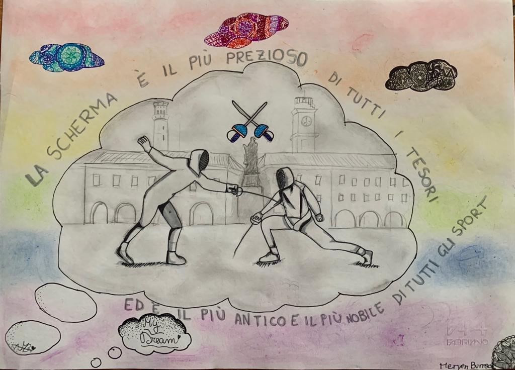 Al vincitore, del 1° premio, Lorenzo Celoria [Classe 4aA – Scuola Primaria “S. Giovanna Antida”] verrà offerta la possibilità di frequentare per 4 mesi un corso gratuito di scherma presso la sala d’armi di via Massaua 9/a, dove tutti i disegni verranno esposti e potranno essere ammirati fino al termine della stagione agonistica. Al 2° posto, Antonio Occhipinti [Classe 2aA – Scuola Secondaria “Amedeo Avogadro”]; 3° posto ex aequo per Meryem Burraci [Classe 1aE – Scuola Secondaria “Amedeo Avogadro”] e Caterina Zeno [Classe 4aA – Scuola Primaria “S. Giovanna Antida”]. Tutti gli elaborati premiati (bellissimi!) sono pubblicati sul nostro sito e sui nostri account Facebook e Instagram. L’elaborato vincente verrà utilizzato per promuovere successivi eventi che la nostra Associazione organizzerà in futuro.