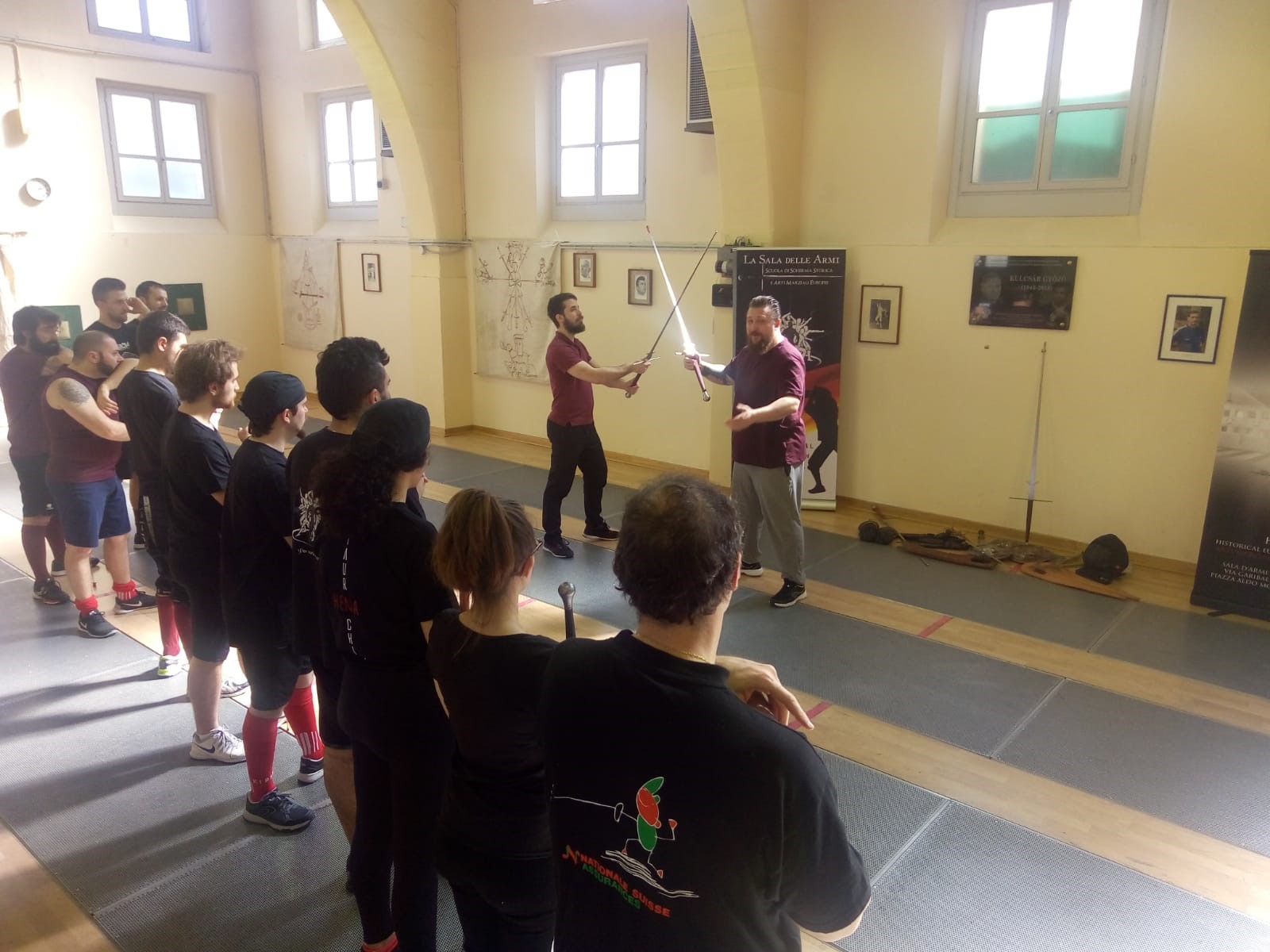 Il corso è tenuto dal maestro di scherma storica Jacopo Penso, laureato in psicologia e dottore di ricerca in Neuroscienze. Ha iniziato la sua formazione marziale fin dall’infanzia, praticando per 10 anni il judo. Dopo aver conquistato negli ultimi due anni il primo posto al campionato nazionale CSEN, è diventato anche Maestro di questa disciplina, che pratica dal 2006 e di cui è istruttore CSEN e membro del direttivo delle associazioni nazionali AIMA (Associazione Italiana Maestri d’Arme) e SPADA (Società di Promozione dell’Arte delle Armi).