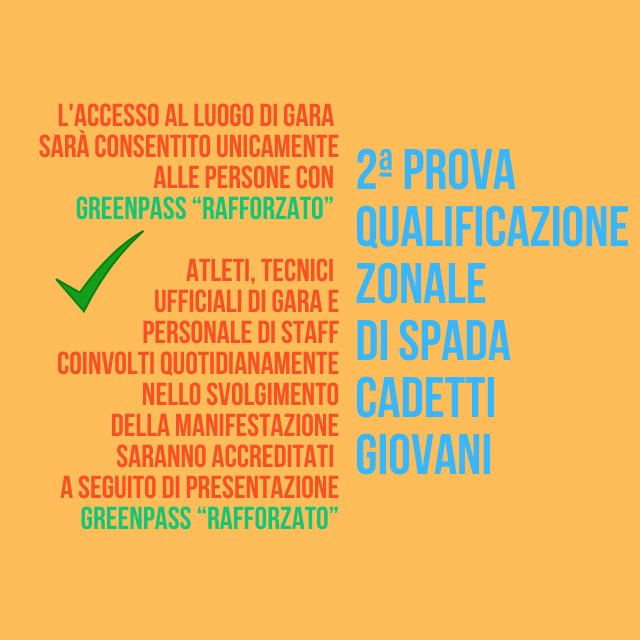 L’accesso al parterre di gara sarà regolamentato, così come previsto dal protocollo Federale per l’organizzazione e lo svolgimento degli eventi. L’accesso a luogo di gara di atleti e/o tecnici di nazionalità non italiana sarà comunque vincolato alla presentazione della certificazione verde “rafforzata”.