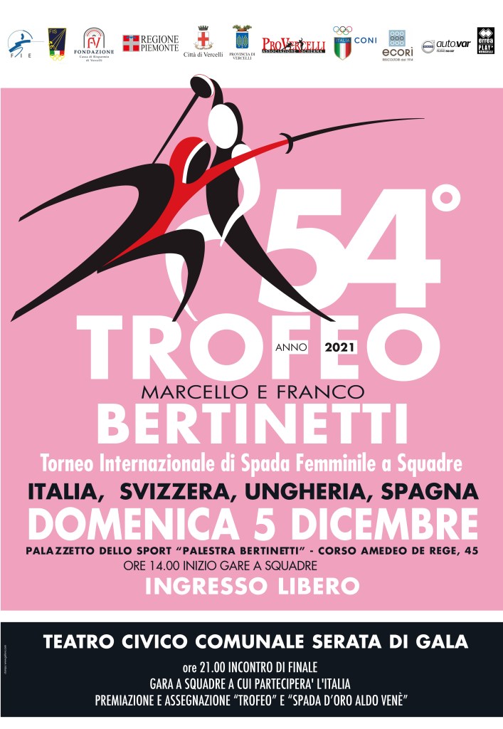 Il 54° Trofeo Bertinetti sarà però solo il primo degli eventi organizzati dall’Associazione Scherma Pro Vercelli che, a partire dal fine settimana del 4-5 dicembre 2021 e fino a giugno 2022, se la situazione sanitaria lo consentirà, porteranno a Vercelli migliaia di persone da tutta Italia e dal mondo. Questo il messaggio del Presidente dell’Associazione Scherma Pro Vercelli, Ing. Riccardo Isola: