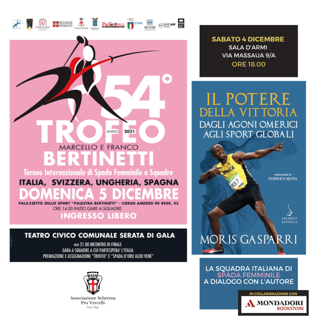 Sabato 4 dicembre alle 18.00 presso la storica sala d’armi dell’Associazione Scherma Pro Vercelli proveremo a indagare questi e altri interrogativi sul tema, dialogando insieme alla Nazionale italiana di spada femminile e a MORIS GASPARRI, che proprio da queste domande è partito per stendere la sua opera: “IL POTERE DELLA VITTORIA” – Dagli agoni omerici agli sport globali, Salerno Editrice (2021). Evento in collaborazione con Mondadori Bookstore di Vercelli.